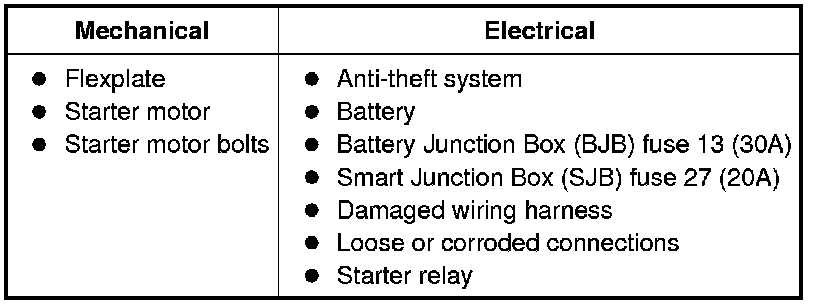 NOTE: The anti-theft system must be functioning correctly before a logical starting system diagnosis can be carried out. Address anti-theft system concerns before continuing. Refer to Anti-Theft - Passive Anti-Theft System (PATS) Testing and Inspection.