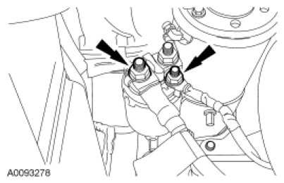 22. Remove the starter motor electrical connectors.