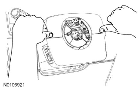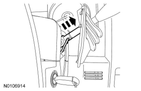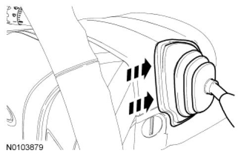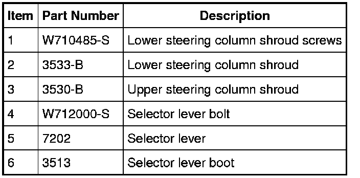Remove the selector lever boot from the steering column shroud by pressing in on the selector lever boot frame.