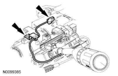 6. Disconnect the electrical connector and remove the screw that retains the harness clip to the steering column.