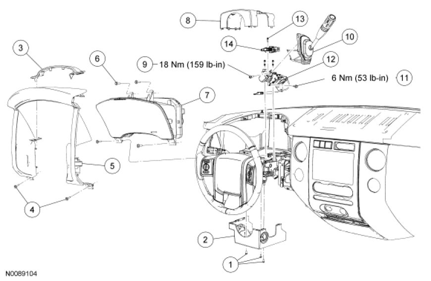 4. NOTE: Steering wheel removed for clarity.