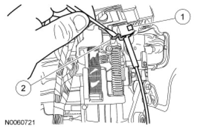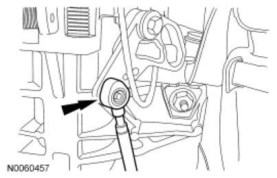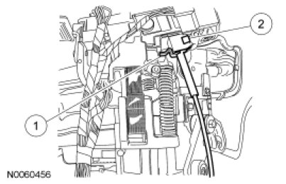 14. NOTICE: To prevent cable damage, do not apply force to the selector lever cable assembly between the steering column selector lever arm and the steering column bracket.