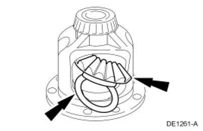 1. Lubricate the differential side gear thrust washers and the differential side gear journals with axle lubricant.