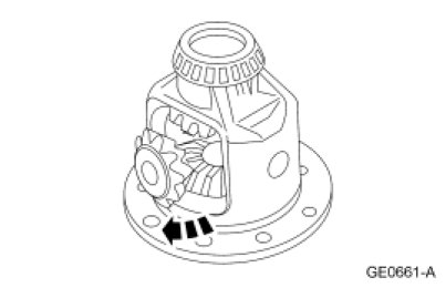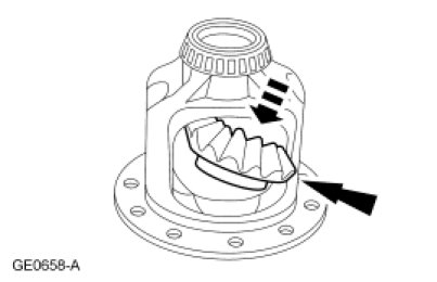 5. Engage the differential pinion gears opposite the differential side gears.