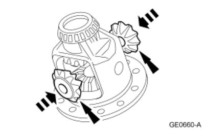 1. Rotate the differential pinion gears to the differential case window, and remove them.