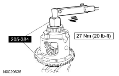 39. NOTICE: Do not, under any circumstance, loosen the pinion nut to reduce drive pinion bearing preload. If it is necessary to reduce drive pinion bearing preload, install a new differential drive pinion collapsible spacer and pinion nut or damage to the component may occur.