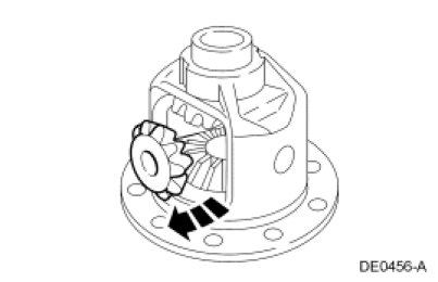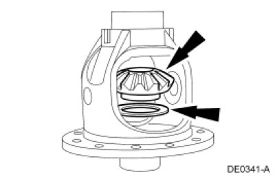 12. NOTE: Coat the differential side gears and differential side gear thrust washers with rear axle lubricant.