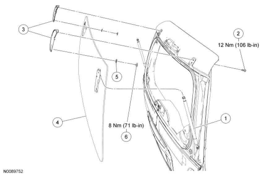 - Apply threadlock to the liftgate glass-to-hinge fasteners during installation.