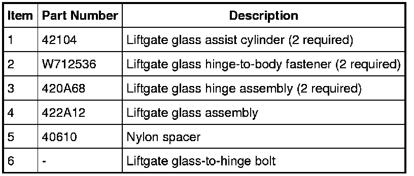 5. Remove the liftgate glass to hinge fasteners and remove the glass.