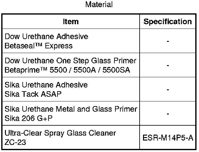 7. NOTE: Be sure to use the same brand and cure-rate products for the urethane adhesive and glass primer. Do not mix different brands of urethane adhesive and glass primer. Refer to the Material Chart in this procedure.