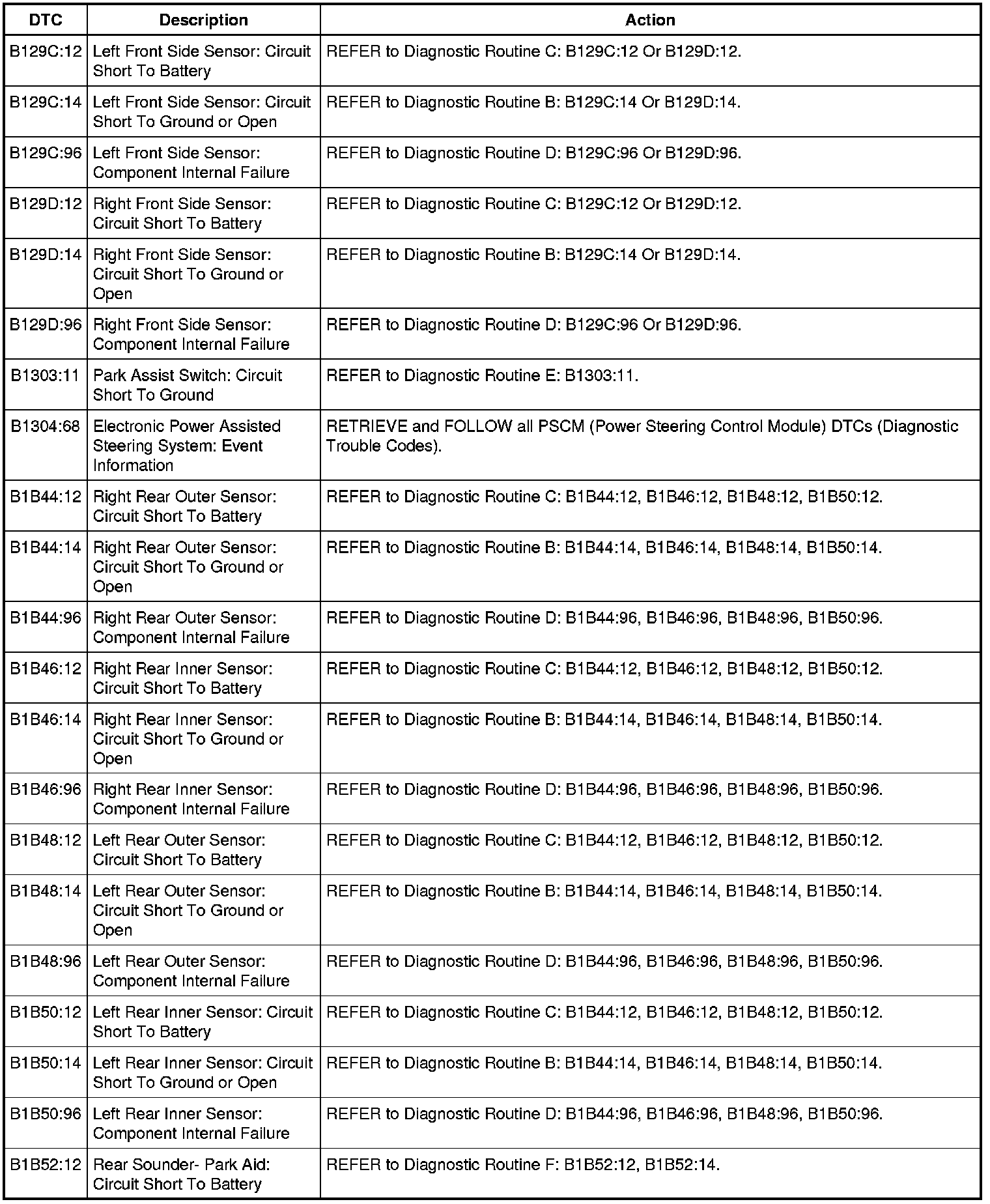 DTC Chart: Parking Aid Module (PAM)