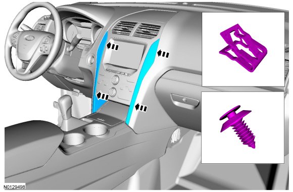 NOTE: LH (Left Hand) front floor console storage bin clips shown, RH (Right Hand) clips similar.