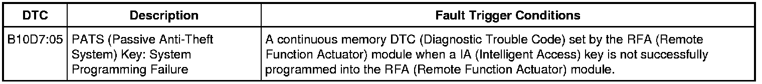 When the RFA (Remote Function Actuator) module enters a key programming state, it activates the backup transceiver to read the key in the backup slot. If a valid IA (Intelligent Access) key is used and there are no concerns with the PATS (Passive Anti-Theft System), the key is programmed into the RFA (Remote Function Actuator) module memory.