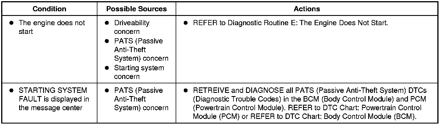 Symptom Chart: Passive Anti-Theft System (PATS)