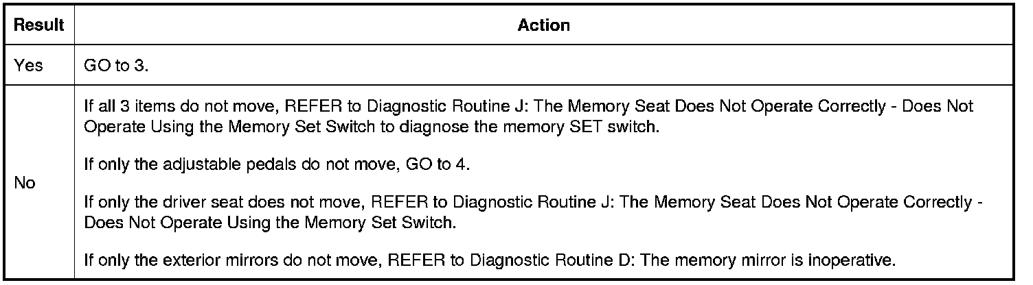 The Adjustable Pedals are inoperative or Do Not Operate Correctly - Using the Memory SET Switch Buttons or the Remote Keyless Entry (RKE) Transmitter