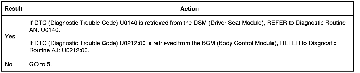 4. CHECK FOR DSM (Driver Seat Module) OR BCM (Body Control Module) DTCs (Diagnostic Trouble Codes)