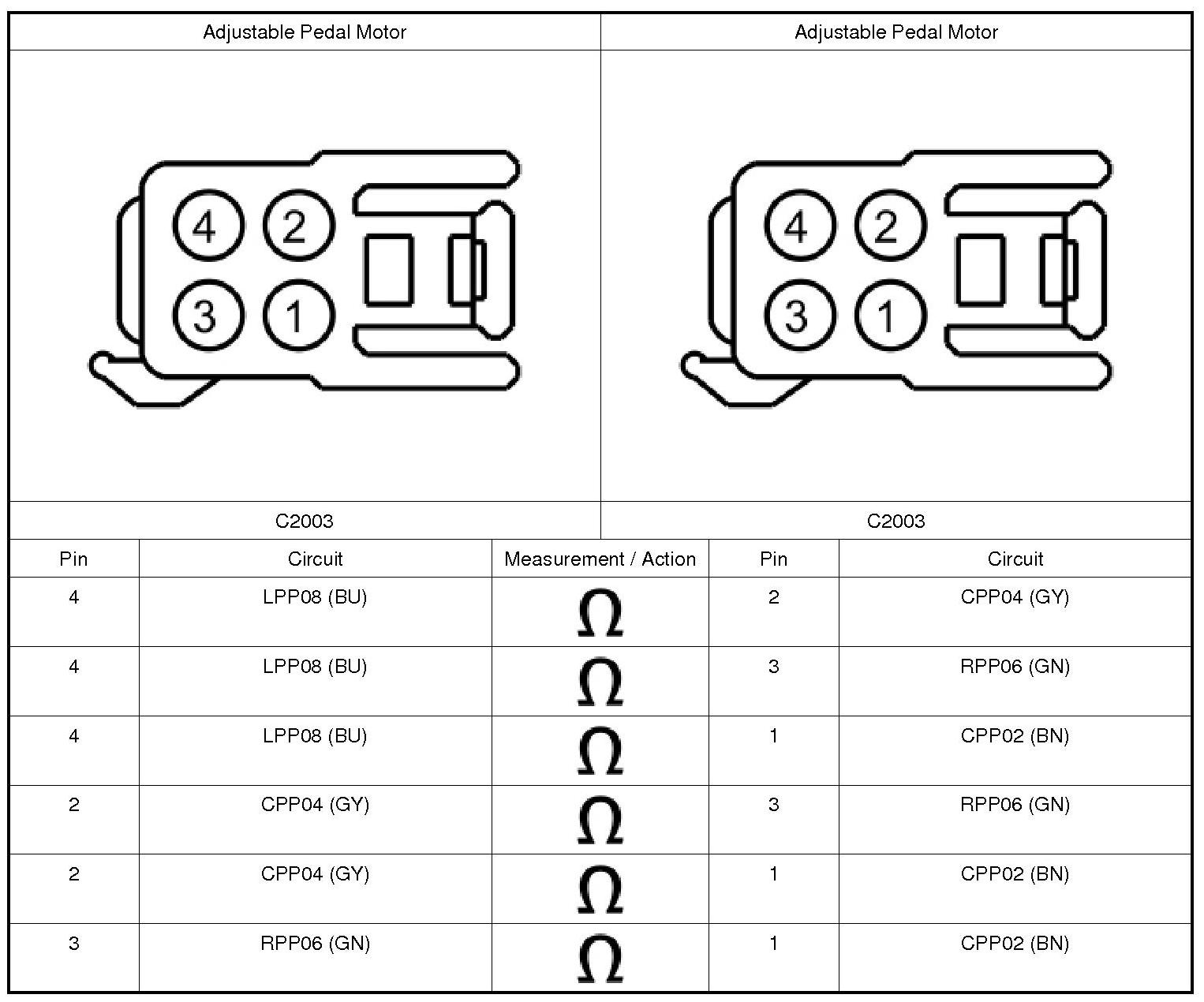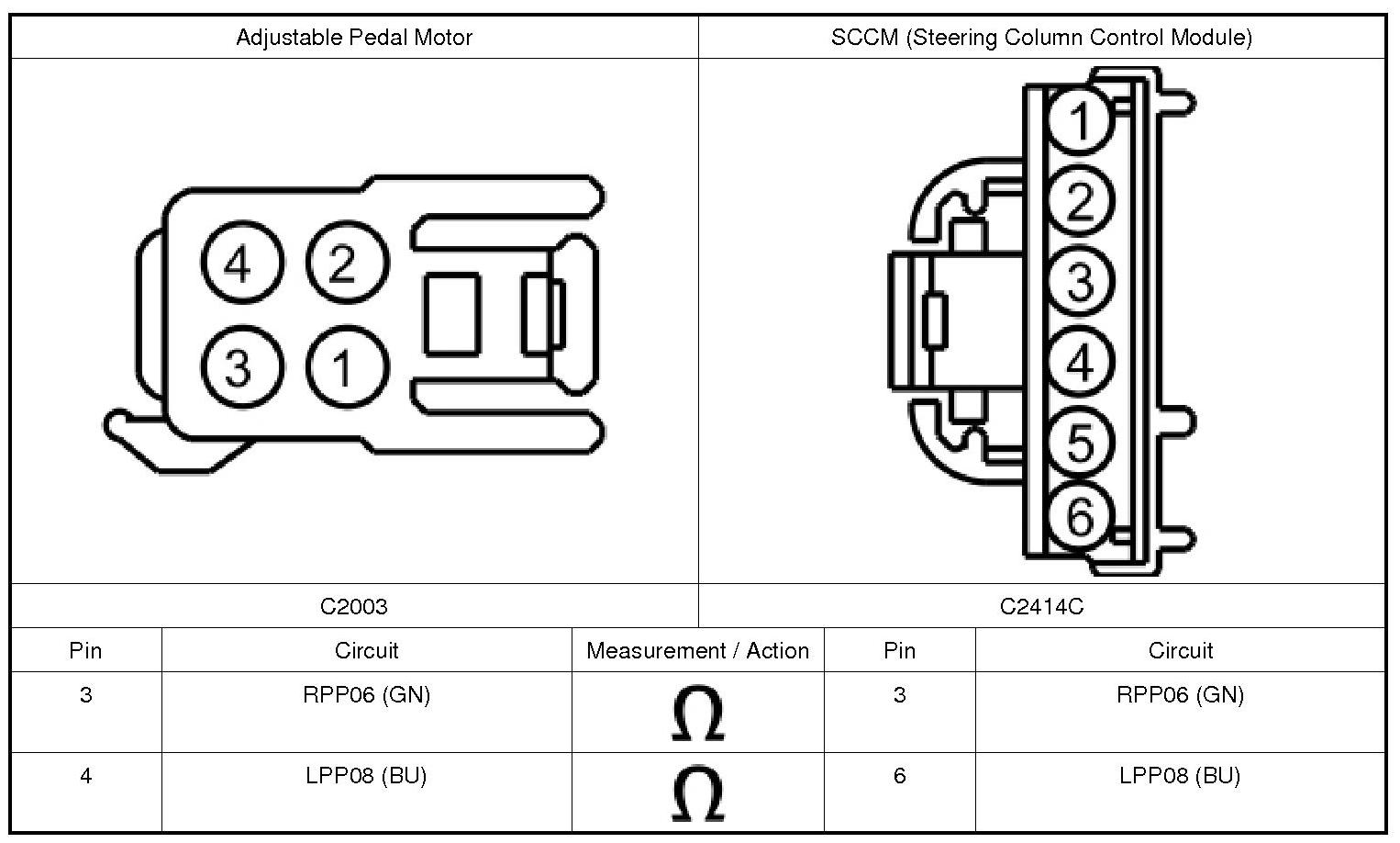 7. CHECK THE ADJUSTABLE PEDAL MOTOR CIRCUITS FOR AN OPEN
