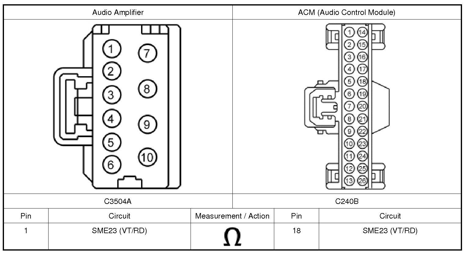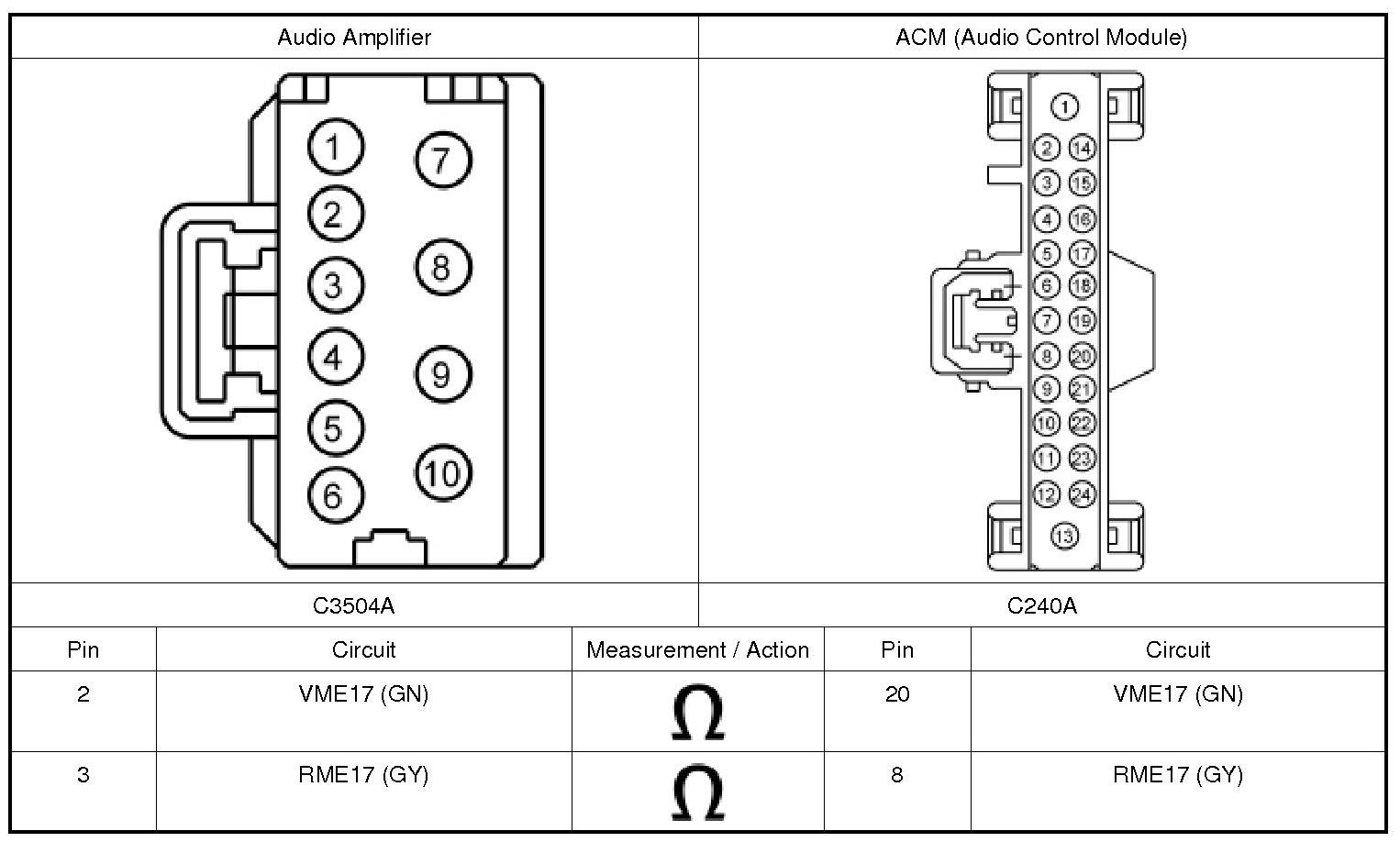 1. Disconnect and inspect all ACM (Audio Control Module) connectors.