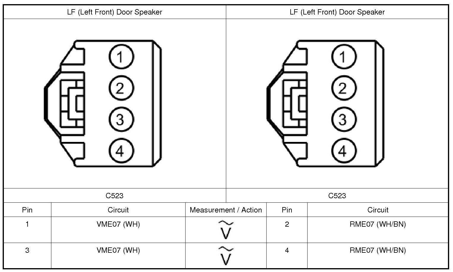 2. Monitor the LF (Left Front) and RF (Right Front) door speaker.
