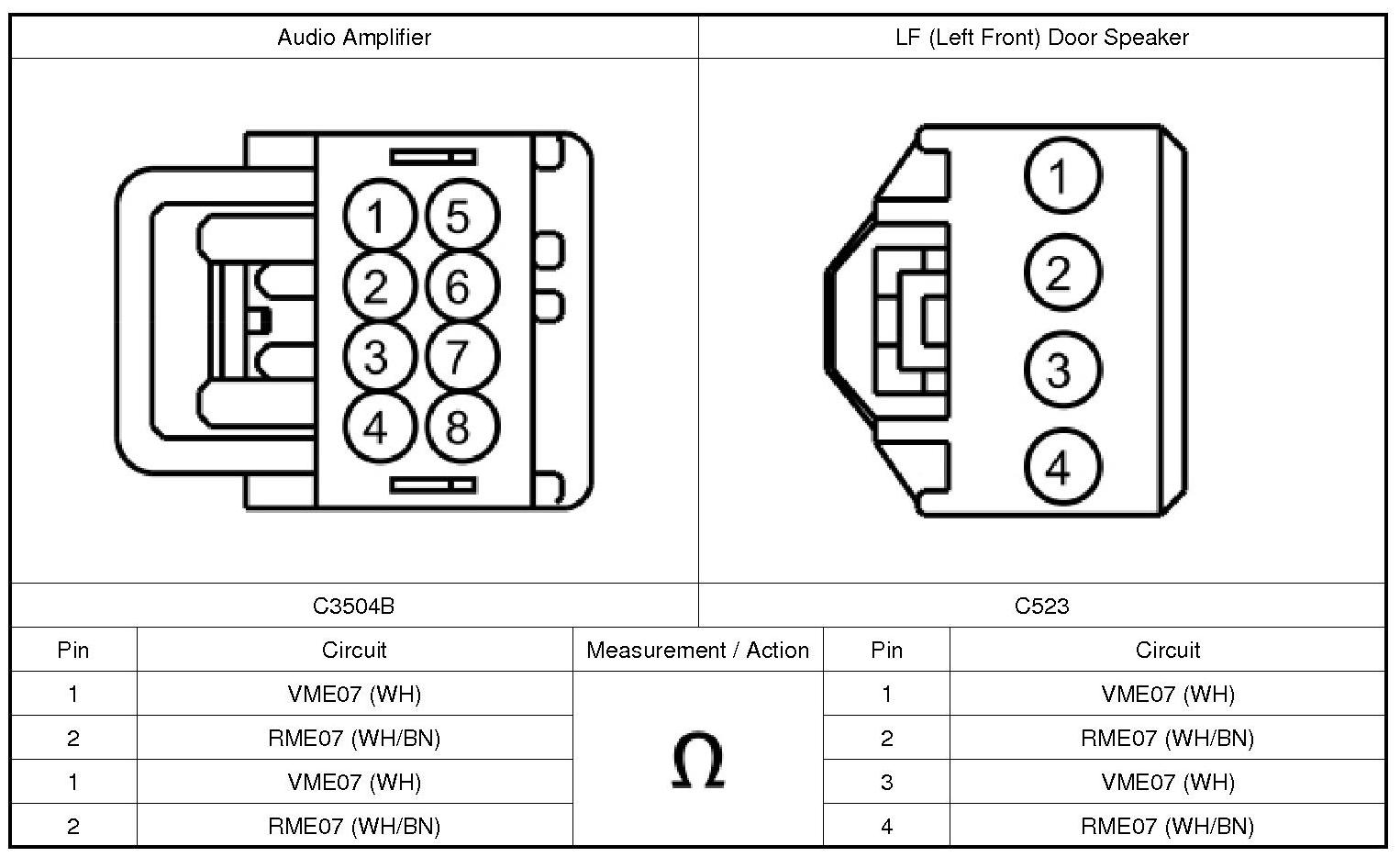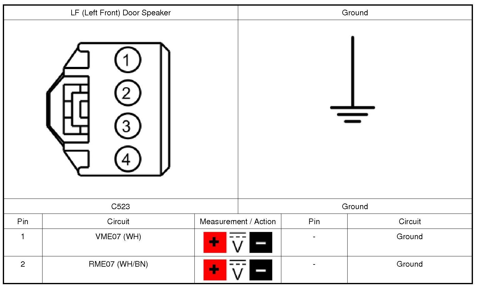 The LF (Left Front) door speaker receives the audio signal from the audio amplifier. REFER to Audio Amplifier Information and Entertainment Systems - Premium Plus.