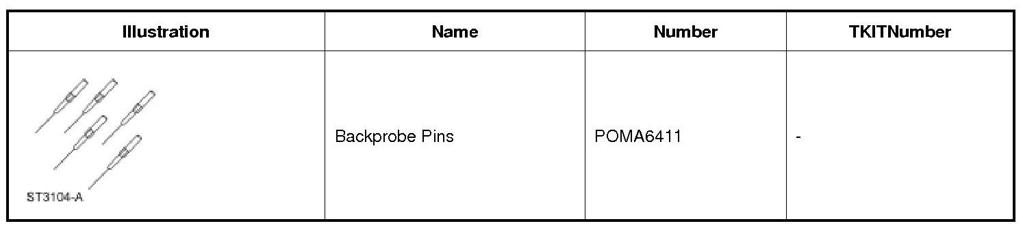 NOTICE: This pinpoint test step directs testing circuits using a back-probe method. Use the special back-probe tool specified in the tool list. Do not force test leads or other probes into connectors. Adequate care must be exercised to avoid connector terminal damage while ensuring that good electrical contact is made with the circuit or terminal. Failure to follow these instructions may cause damage to wiring, terminals, or connectors and subsequent electrical faults.