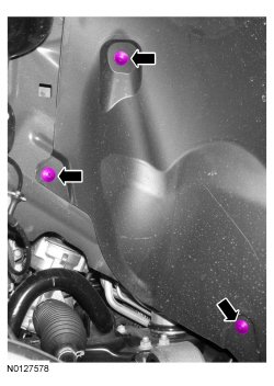 7. Install the 4 front fender splash shield screws.