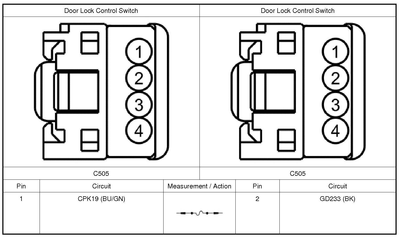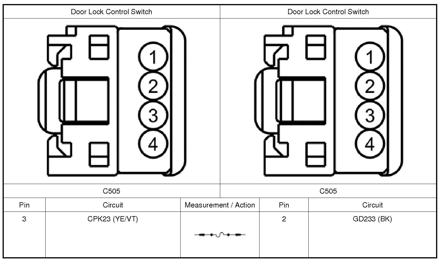 1. Disconnect LH (Left Hand) Door Lock Control Switch C505.