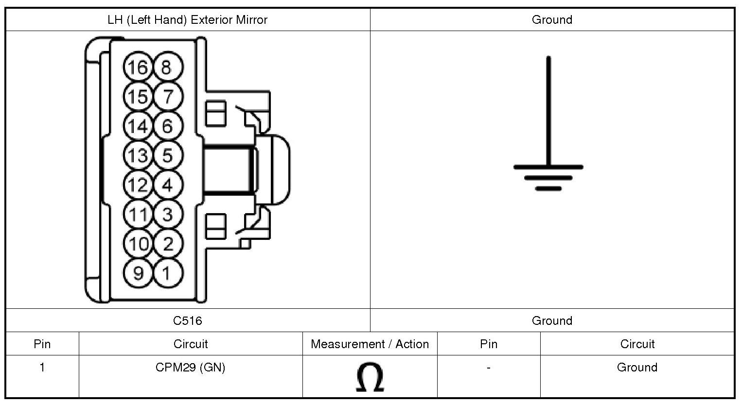 5. For incorrectly operating LH (Left Hand) mirror, while using the exterior mirror control switch in the right, left and released positions, monitor:
