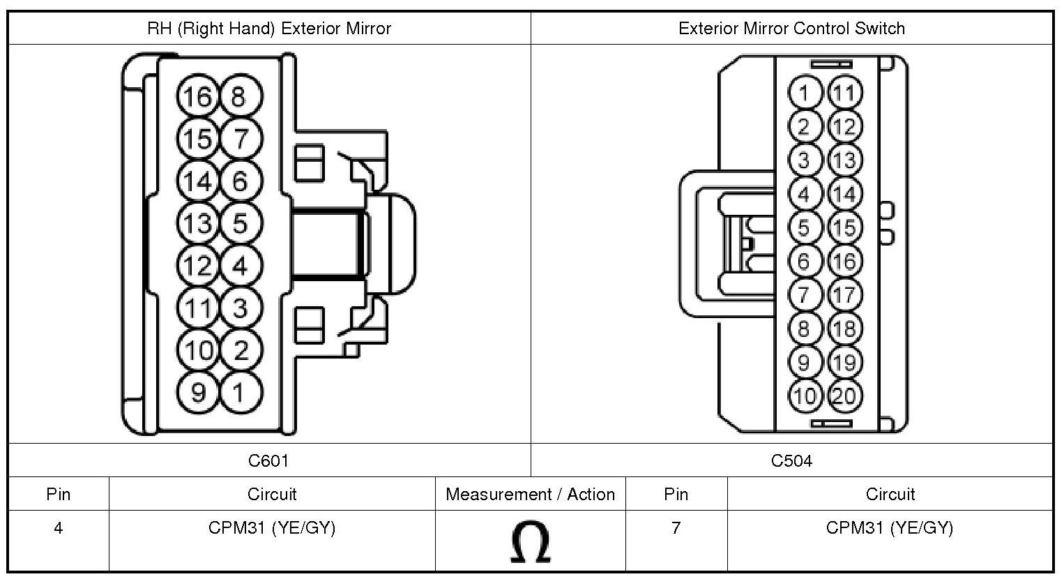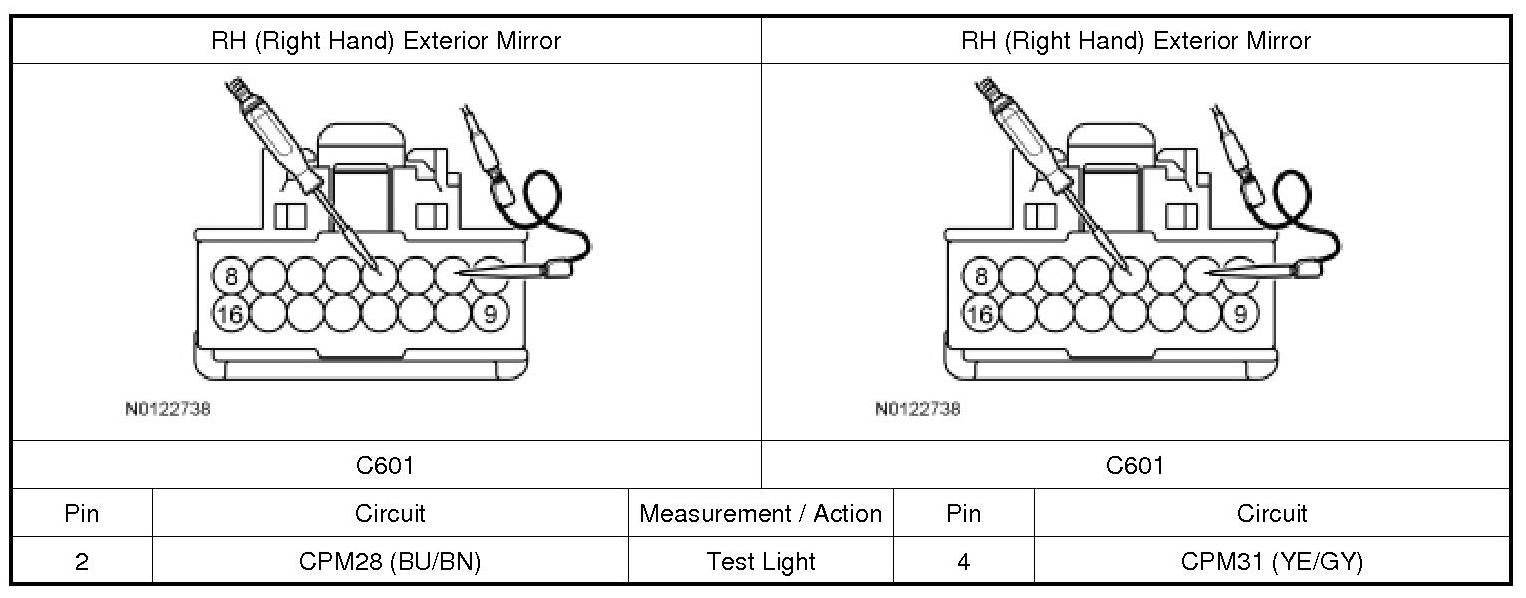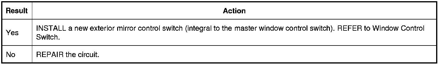 6. For incorrectly operating RH (Right Hand) mirror, while using the exterior mirror control switch in the right, left and released positions, monitor: