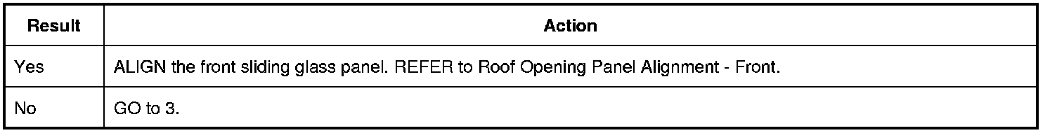 2. Operate the front sliding glass panel roof opening panel to the full OPEN and CLOSED position using the slide control switch.