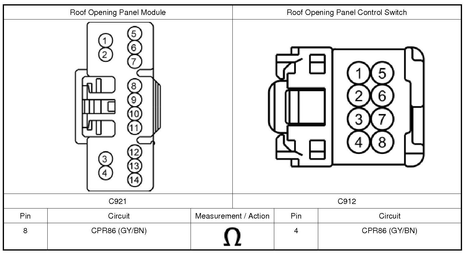 Refer to Wiring Diagram Set 101, Roof Opening Panel for schematic and connector information. Diagrams By Number