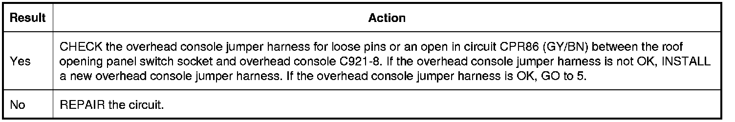 3. Carry out the Roof Opening Panel Control Switch Component Test.