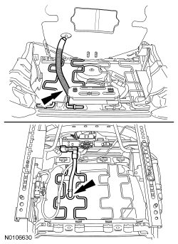 For a passenger seat, route the OCS (Occupant Classification System) hose and pressure sensor through the cushion support wires.