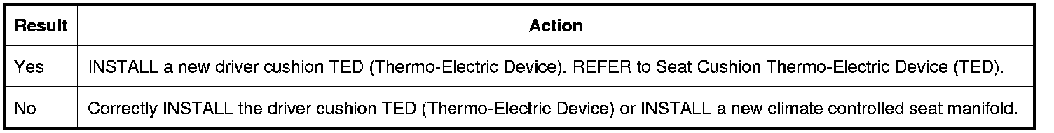 1. Check the driver cushion TED (Thermo-Electric Device) and climate controlled seat manifold for damage, restriction and for correct installation.