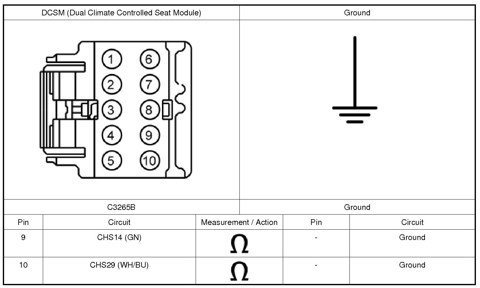 1. Disconnect: DCSM (Dual Climate Controlled Seat Module) C3265C.