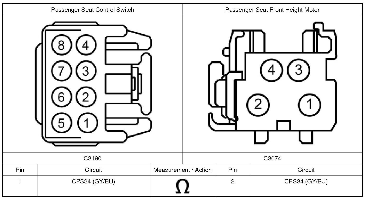 1. Disconnect: Passenger Seat Control Switch C3190.