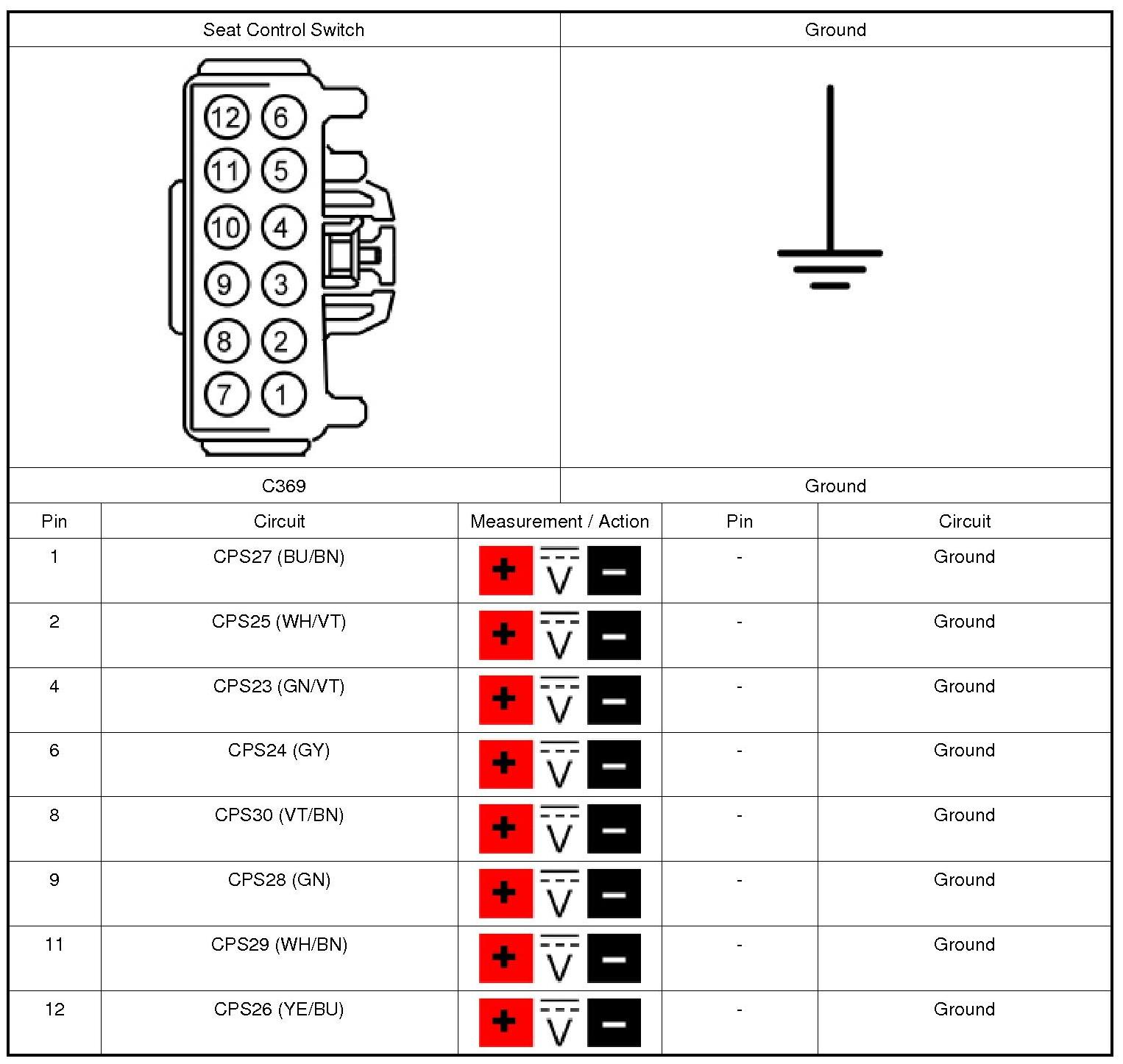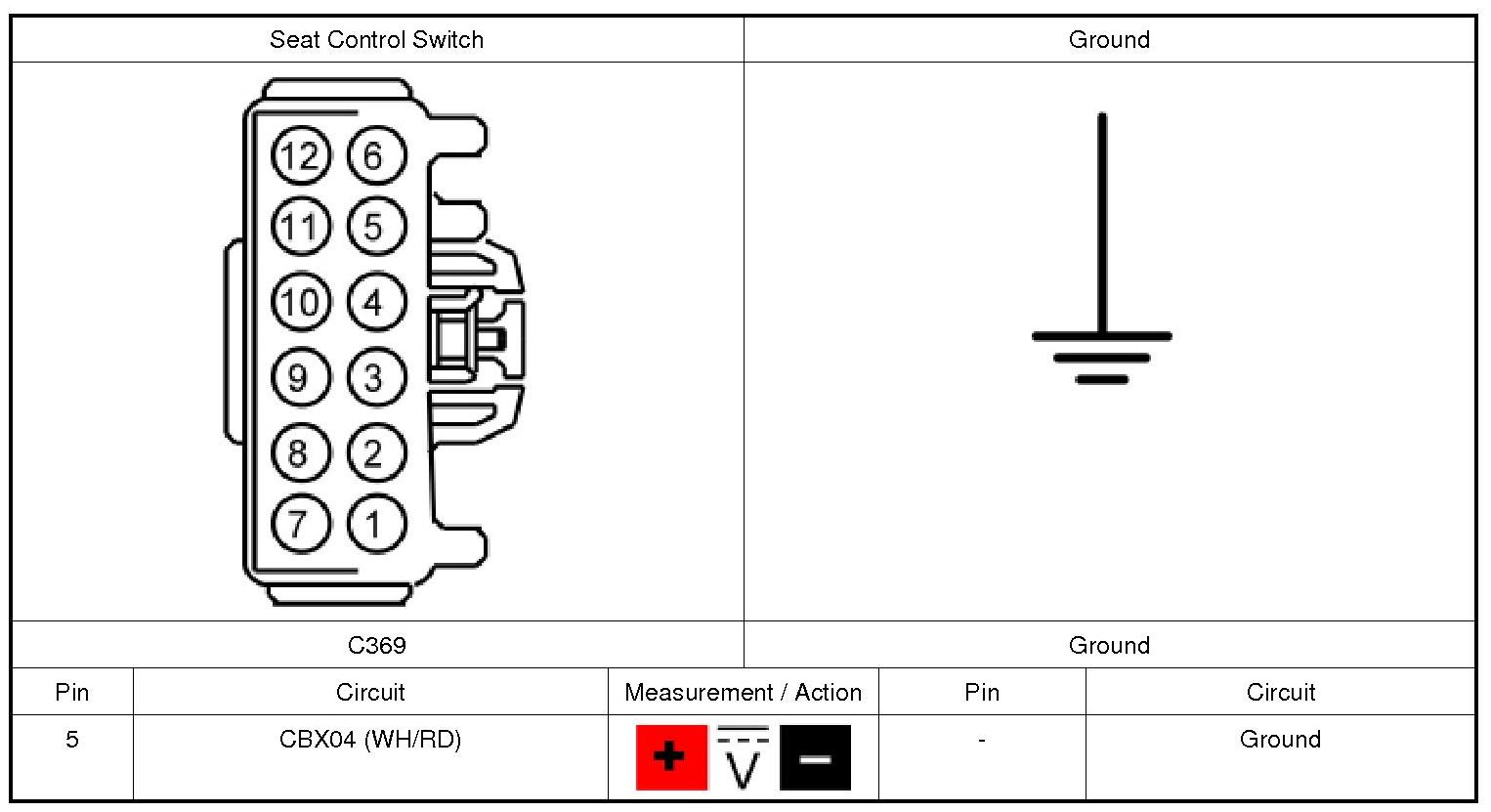 6. NOTE: During the following step, the voltage being measured changes polarity dependent upon which direction the seat control switch is activated.