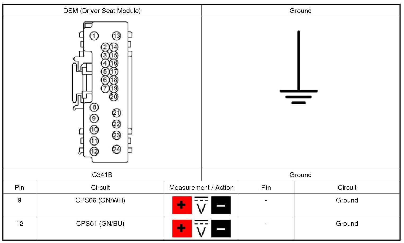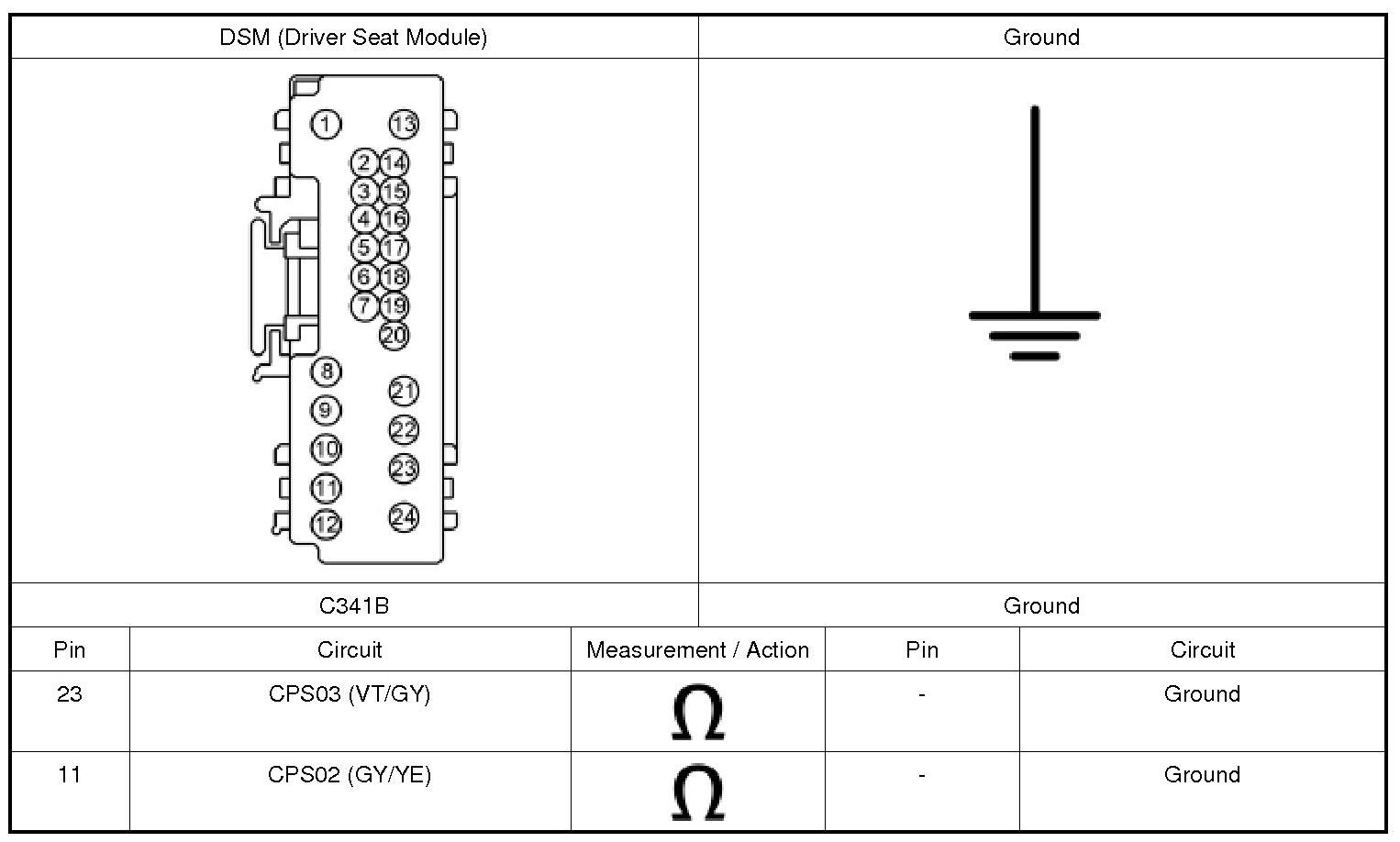 13. CHECK THE DSM (Driver Seat Module) GROUND CIRCUITS FOR AN OPEN