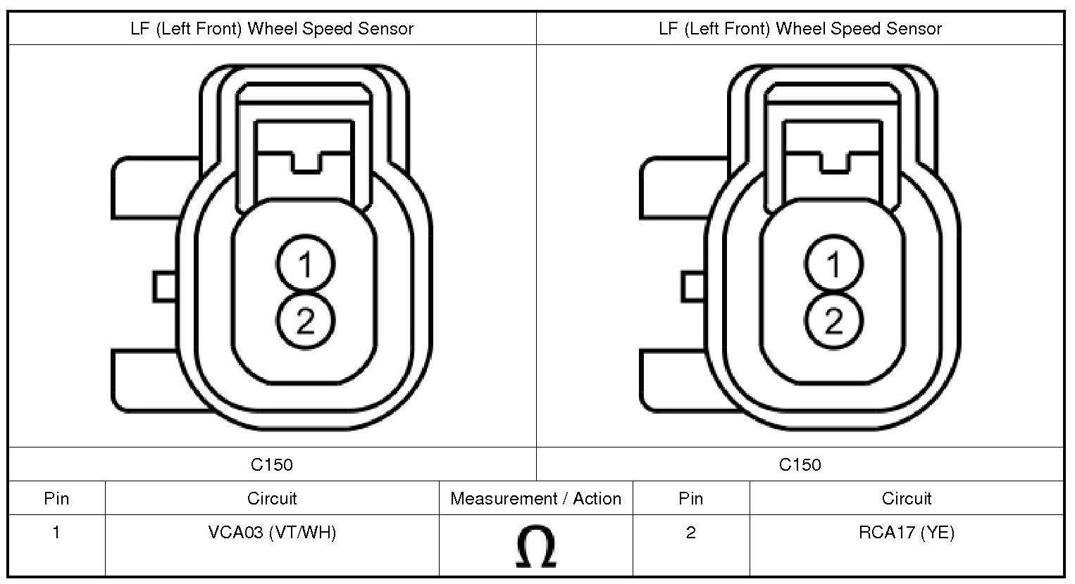 2. For the LF (Left Front) wheel speed sensor, measure: