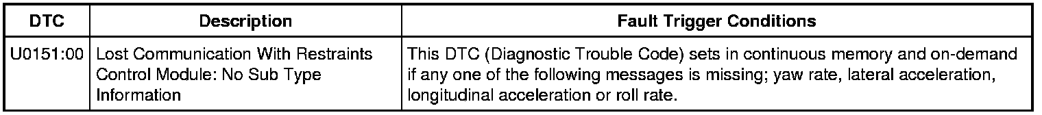 With the ignition ON, the RCM (Restraints Control Module) sends the ABS (Anti-Lock Brake System) module messages over a private HS-CAN (High Speed Controller Area Network). If the ABS (Anti-Lock Brake System) module does not receive these messages within a certain time frame (less than 1 second), the ABS (Anti-Lock Brake System) module sets DTCs (Diagnostic Trouble Codes).