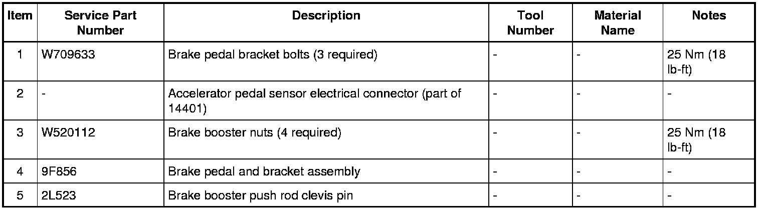 10. Disconnect the vehicle electrical harness locators and remove the brake pedal bracket assembly from the vehicle.