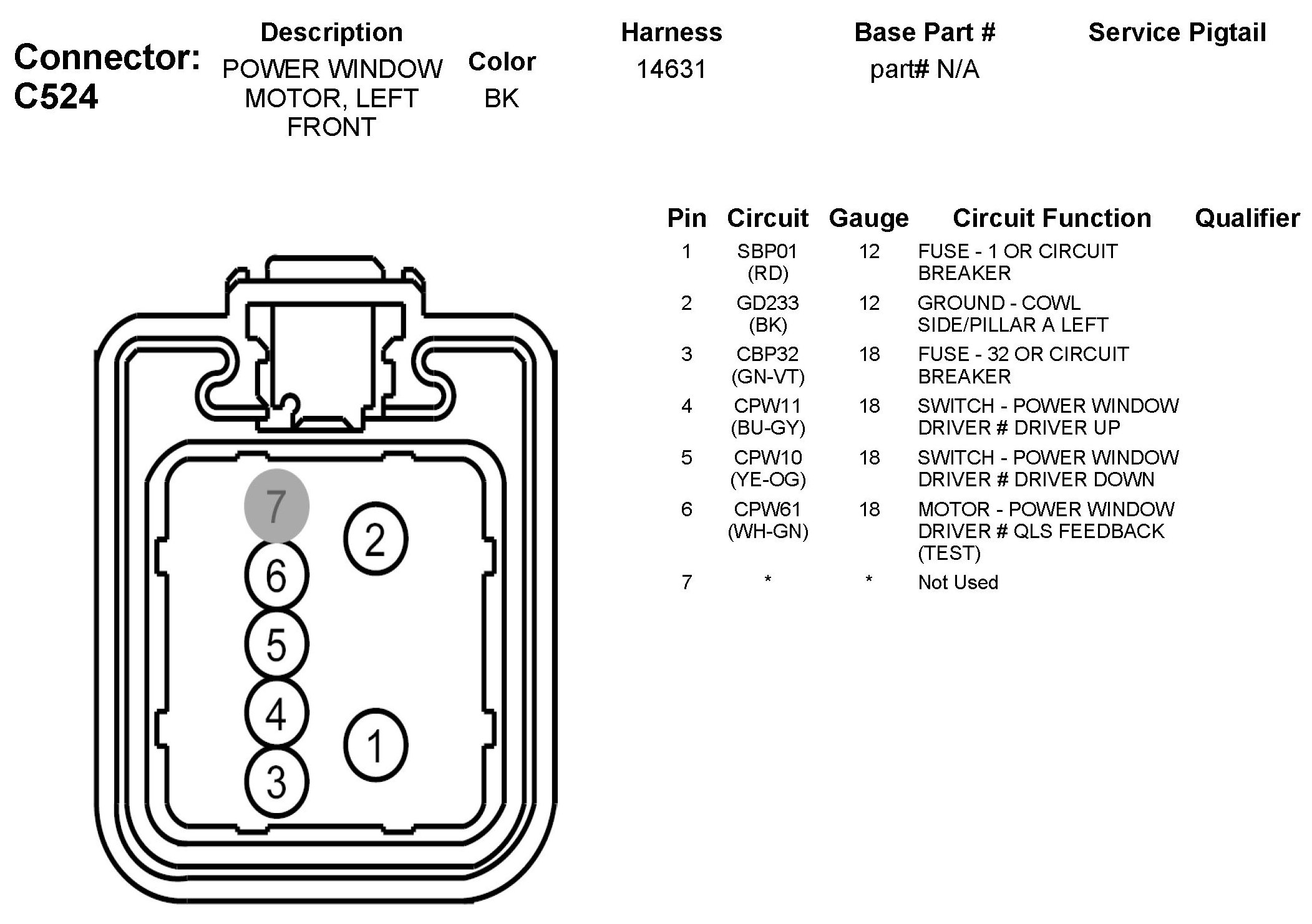 C524 Power Window Motor, Left Front