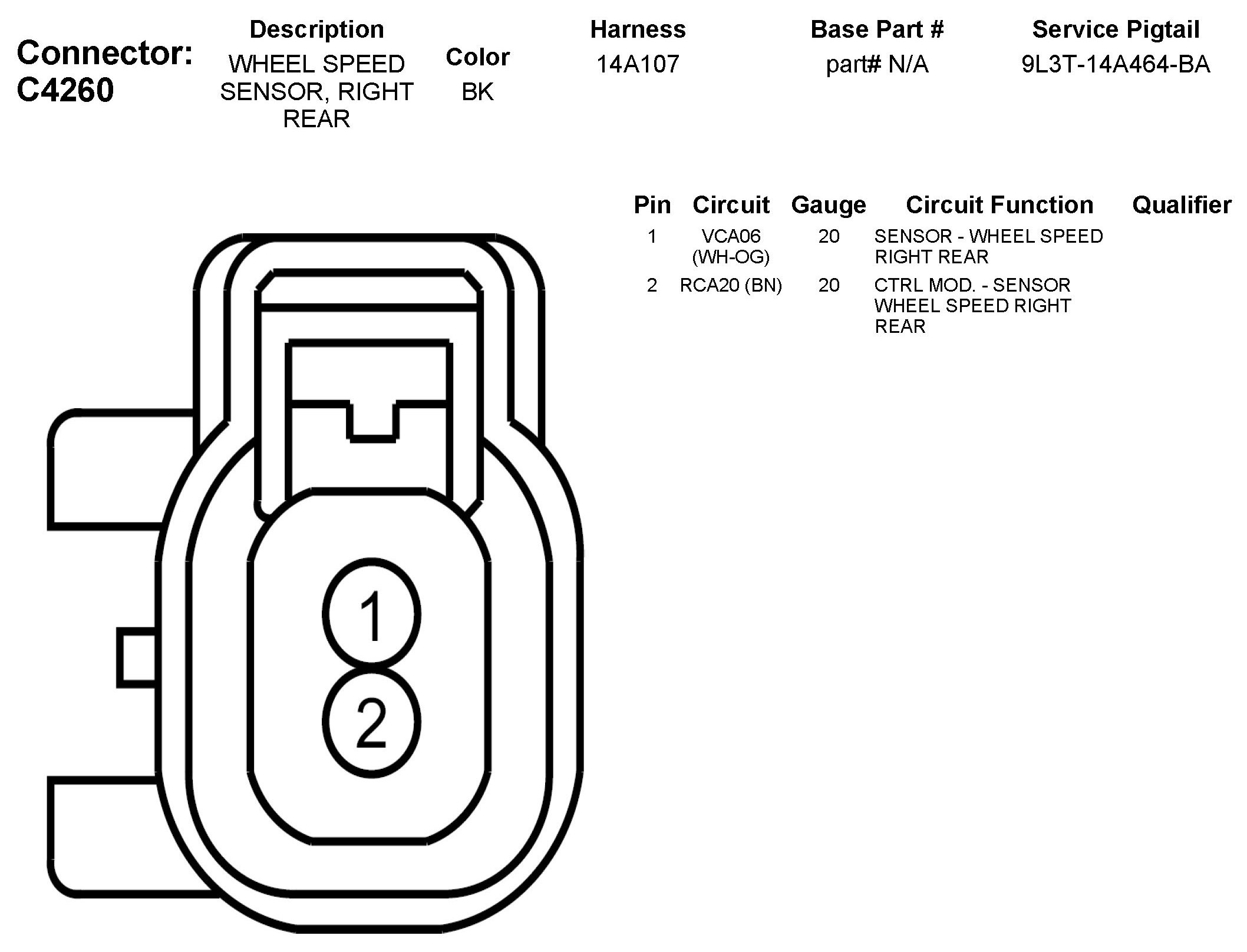 C4260 Wheel Speed Sensor, Right Rear