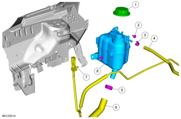 NOTICE: The cooling system is filled with Motorcraft(R) Specialty Green Engine Coolant. Always fill the cooling system with the manufacturer's specified coolant. Chemically flush the cooling system if a non-specified coolant has been used. REFER to REFER to Cooling System Flushing. Failure to follow these instructions may damage the engine or cooling system Cooling System Flushing.