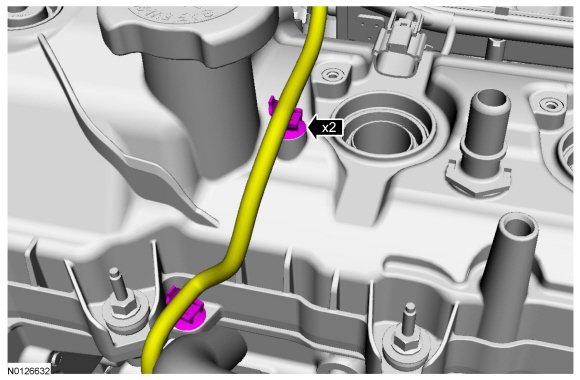 1. Remove the wiring harness retainer from the rear of the LH (Left Hand) cylinder head.