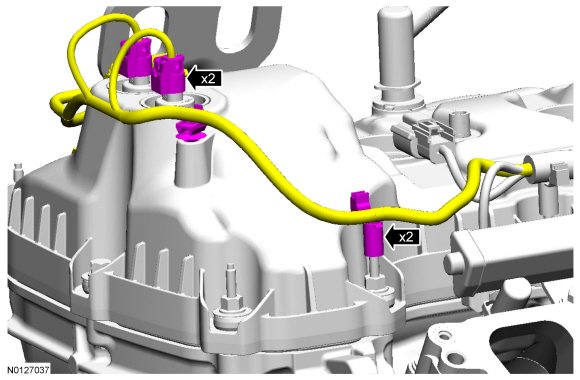 29. Disconnect the 2 VCT (Variable Camshaft Timing) oil control solenoid electrical connectors.
