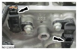 14. Disconnect the 2 VCT (Variable Camshaft Timing) oil control solenoid electrical connectors.