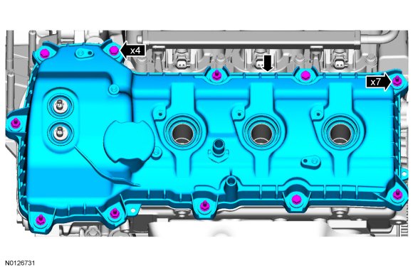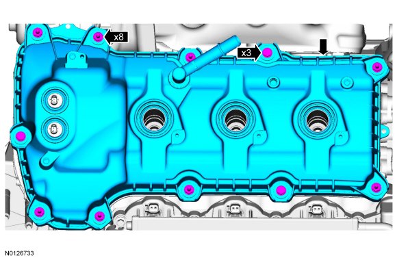 75. NOTICE: While removing the valve cover do not apply excessive force to the VCT (Variable Camshaft Timing) oil control solenoid or damage may occur.