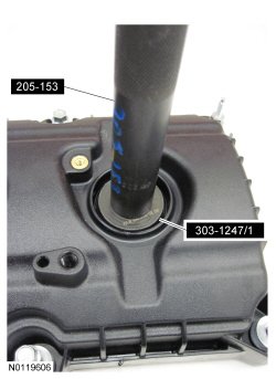 100. NOTE: When the 303-1248 is removed, valve spring pressure may rotate the LH (Left Hand) camshafts approximately 3 degrees to a neutral position.