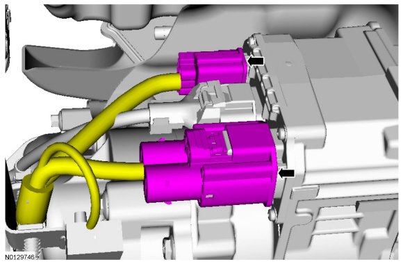 87. Detach the 2 EPAS (Electronic Power Assist Steering) wiring harness retainers from the transaxle stud bolts.